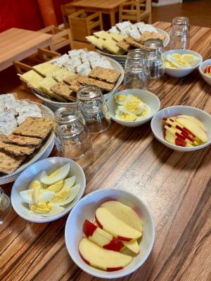 offenes Frühstück Die Kinder können Frühstücken oder in den Gruppenraum gehen. Wir bieten Brot (Knäckebrot oder Vollkornbrot) oder Müsli für die Kinder an. |