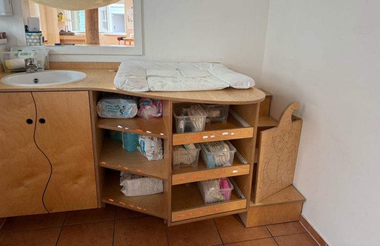 Nach Bedarf werden alle Kinder gewickelt. Dabei ist es uns ein großes Anliegen, die Grenzen und Rechte des Kindes zu wahren. Daher dürfen die Kinder z.B. mitentscheiden, von welcher Fachkraft sie gewickelt werden möchten.
